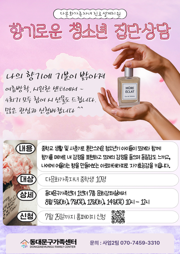 [동대문구가족센터] 집단상담(향기로운 청소년 집단상담) (~8/9)